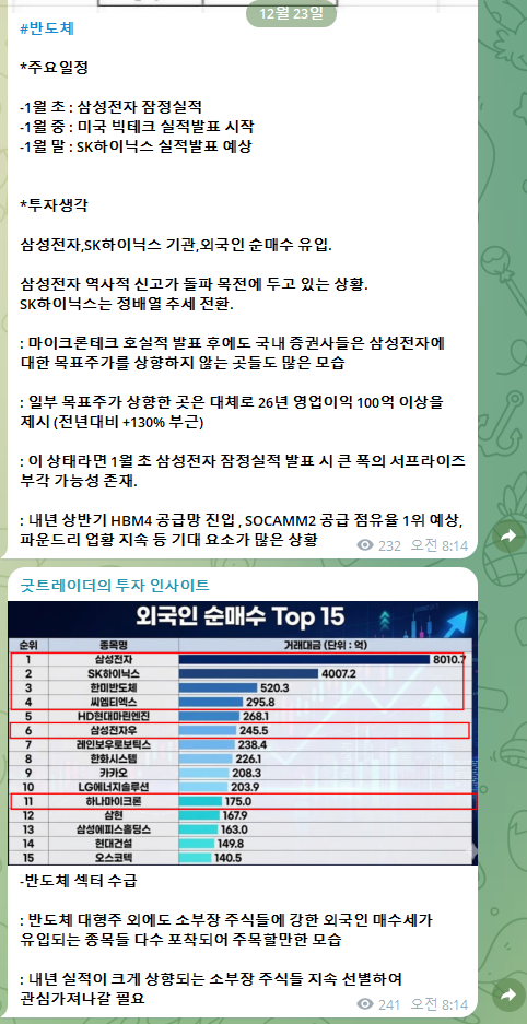 그리고 삼성전자,SK하이닉스 및 반도체 소부장 Top pick종목들에 대한