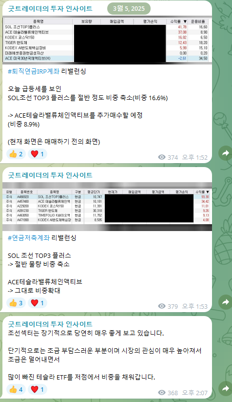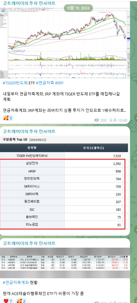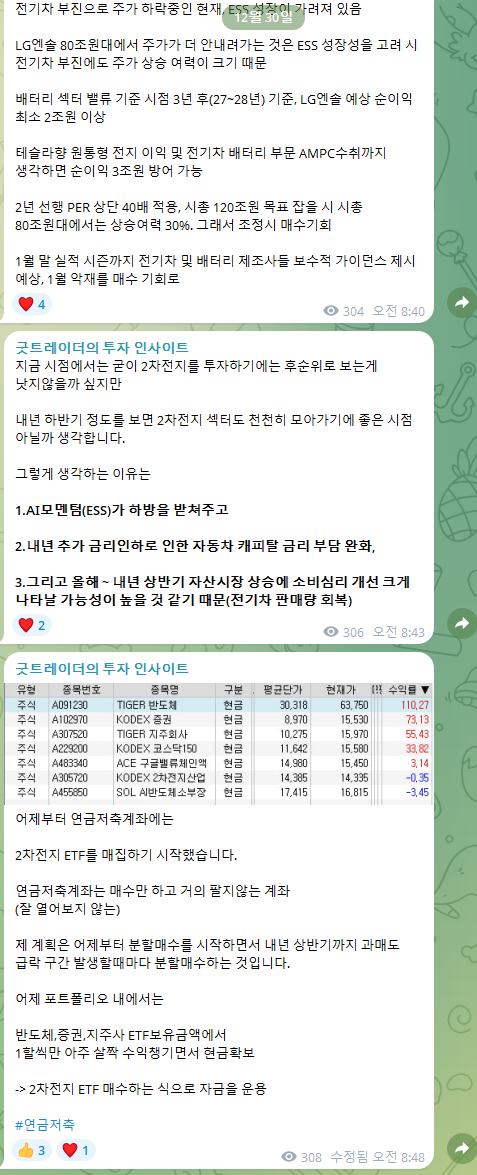 텔레그램 채널을 통해 연금저축계좌 현황을 투명하게 공개하며