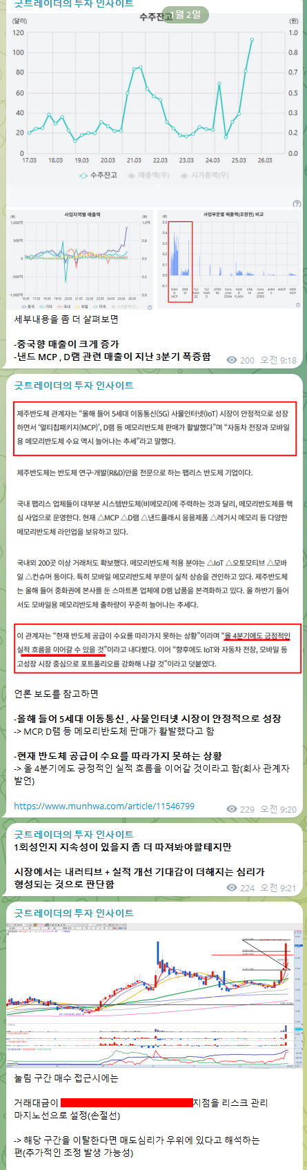 : 장중시황 및 관심종목 특이사항, 투자포인트 공유