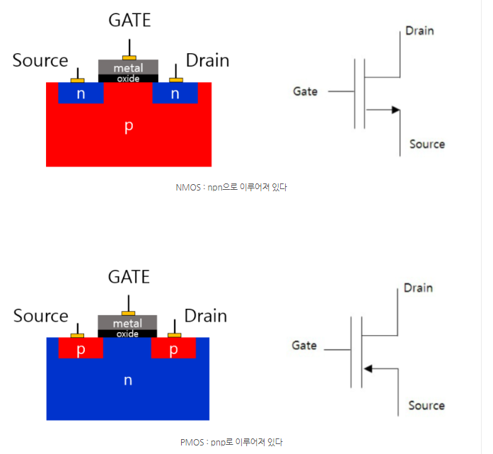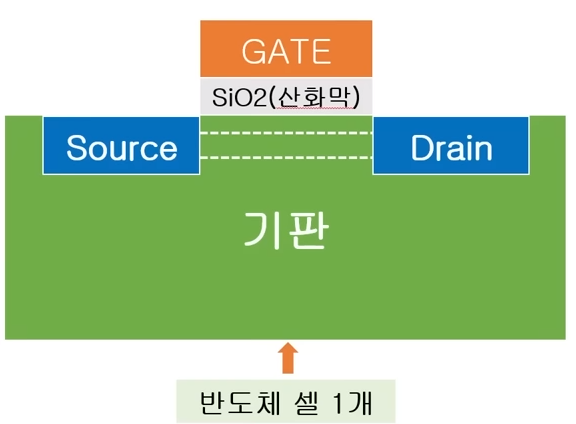 트랜지스터: 반도체 소자. 일상에서는 반도체=트랜지스터라고 하는데, 반도체 공정에서 트랜지스터는 반도체를 이루는 집적회로 중 하나의 소자를 말한다. 현재는 트랜지스터 수억개가 집적되어 반도체를 이룬다고 보면 된다.