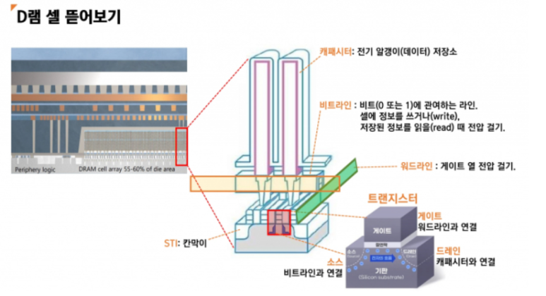 비트라인:읽기나 쓰기 동작시에 셀 외부와 내부 사이에 데이터가 이동하는 통로이다. 신호 (0,1)을 전달한다.