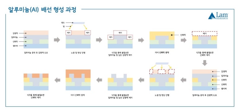 LOW-k: 유전율이 낮은 물질. 전기가 빠르게 이동하는 배선과 배선 사이를 채우는 곳에 절연막으로 많이 쓰인다.