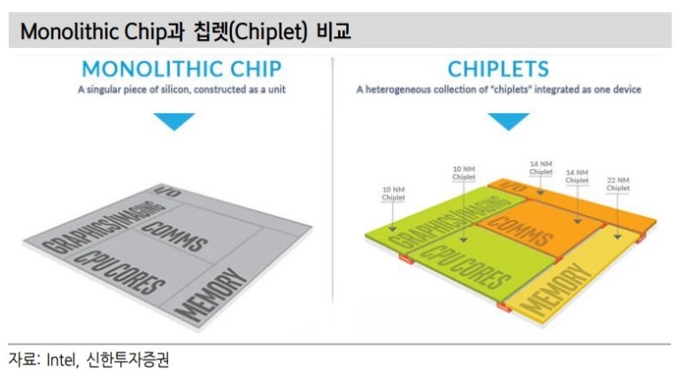 Co-EMIB: Foveros와 EMIB기술을 합친 것으로, EMIB를 여러개 만들어 서로 연결하는 것이다.