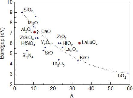 SiO2: 실리콘 산화막(이산화규소). Si보다 높은 유전율과 밴드 갭으로 효과적인 절연체 역할을 한다.