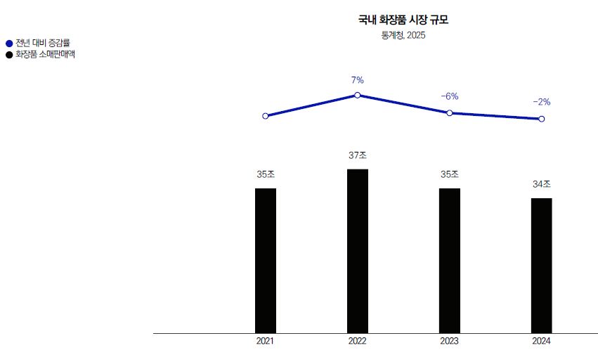 국내 화장품 시장은 이미 포화. 2024년 국내 화장품 시장은 -2% 역성장