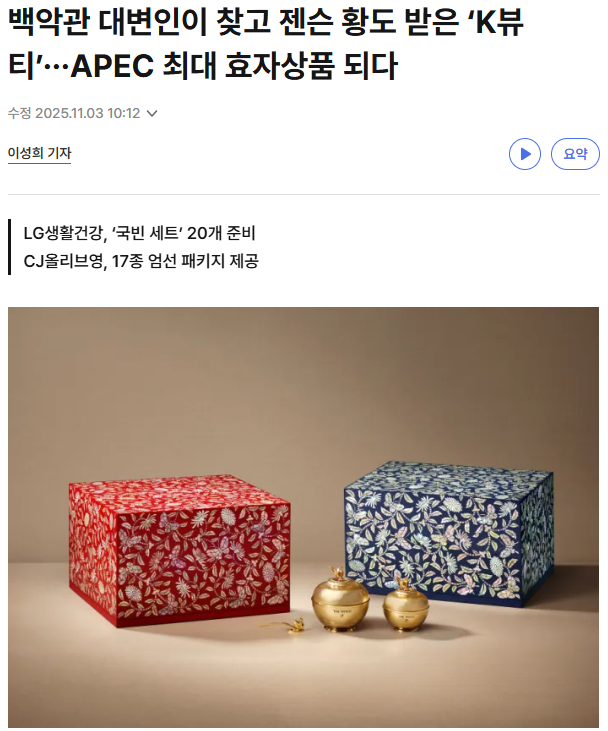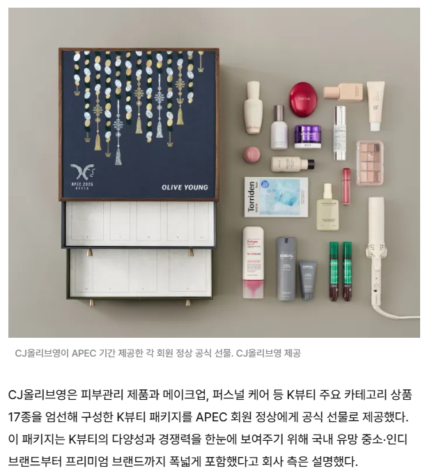 올영에서 APEC 기간 제공한 인디 프리미엄 브랜드 공식 선물 세트