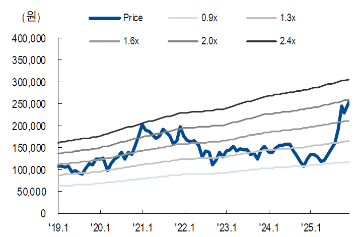 과거 자산과 이익을 기초로 한 멀티플 밴드로 목표주가를 가져가는 건 적합하지 않을 수 있다는 생각