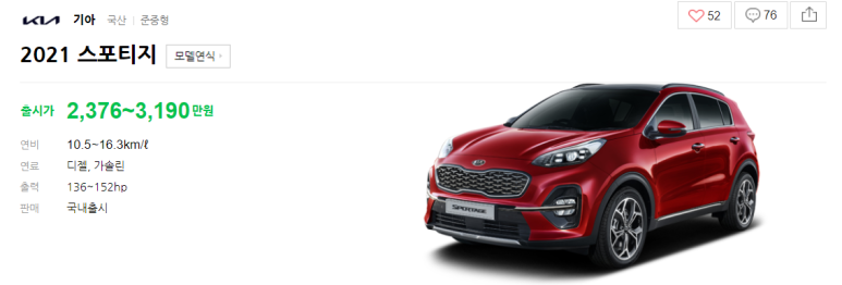 Project C 2021년 2분기 결산 - 차량 : 스포티지