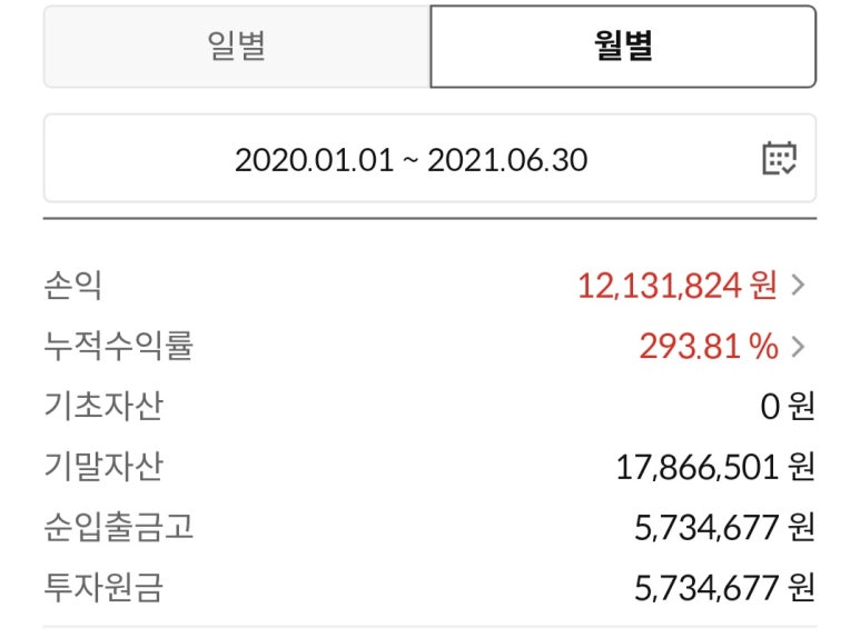 공모주 청약때문인지 투자원금이 차이가 있네...