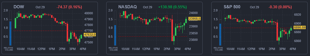 미국 뉴욕 증시의 3대 지수가 29일(현지시간) 혼조세로 마감했다. 제롬 파월 미 연방준비제도(Fed) 의장이 연내 추가 금리 인하에 나서지 않을 수도 있음을 시사하면서, 장중 사상 최고치를 새로 썼던 주요 지수들은 상승 폭을 반납했다. 금리 인하 기대감이 둔화되자 미 국채 금리는 급등했고, 10년물은 4%를 넘어섰다.