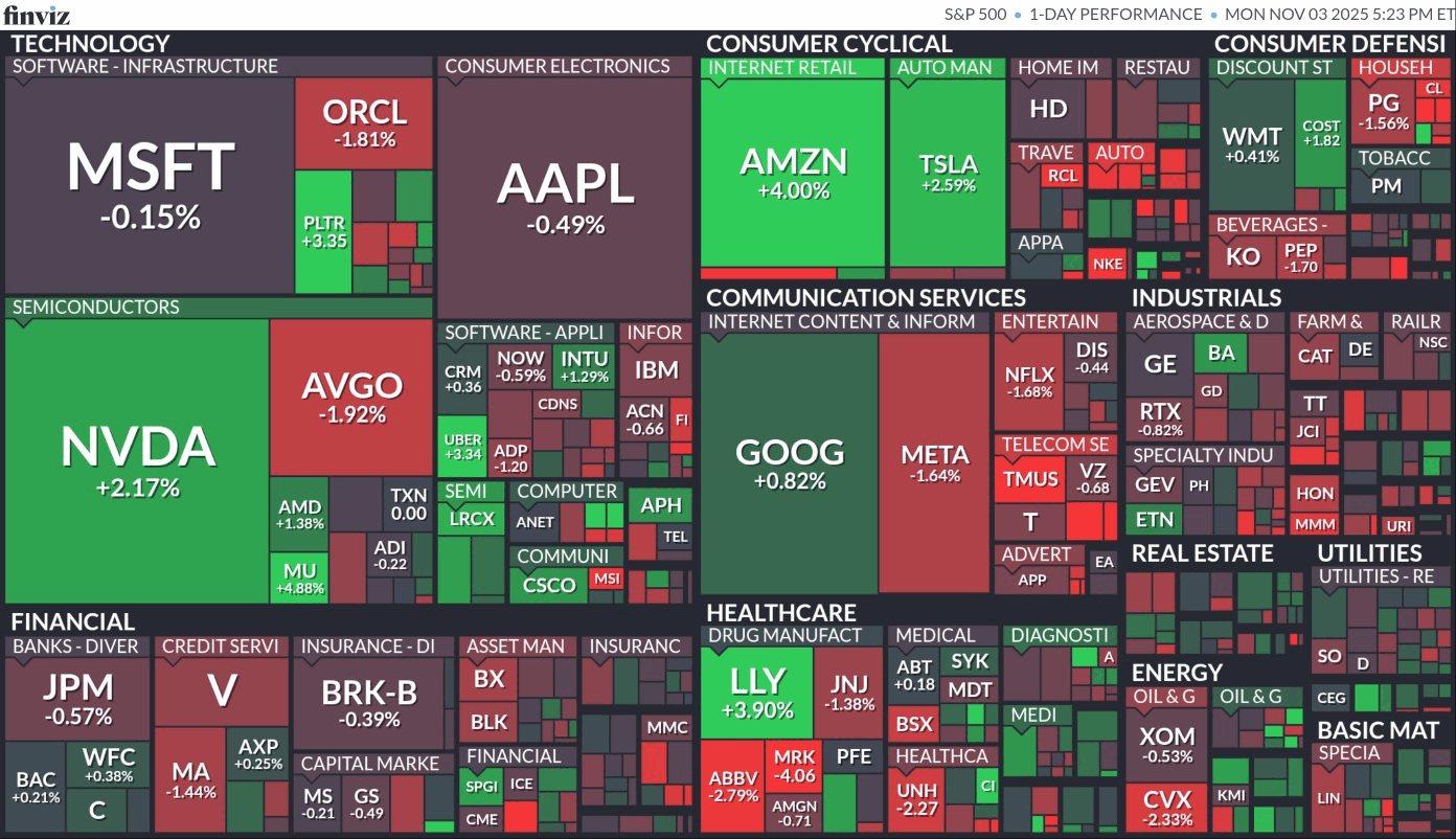 - 견고한 분기 실적과 예상보다 좋은 가이던스를 발표한 후 2% 상승했습니다. 팔란티어는 2025년 4분기 매출을 13억 2,700만-13억 3,100만 달러로 예상하며, 이는 시장 컨센서스 11억 8,000만 달러를 상회합니다.