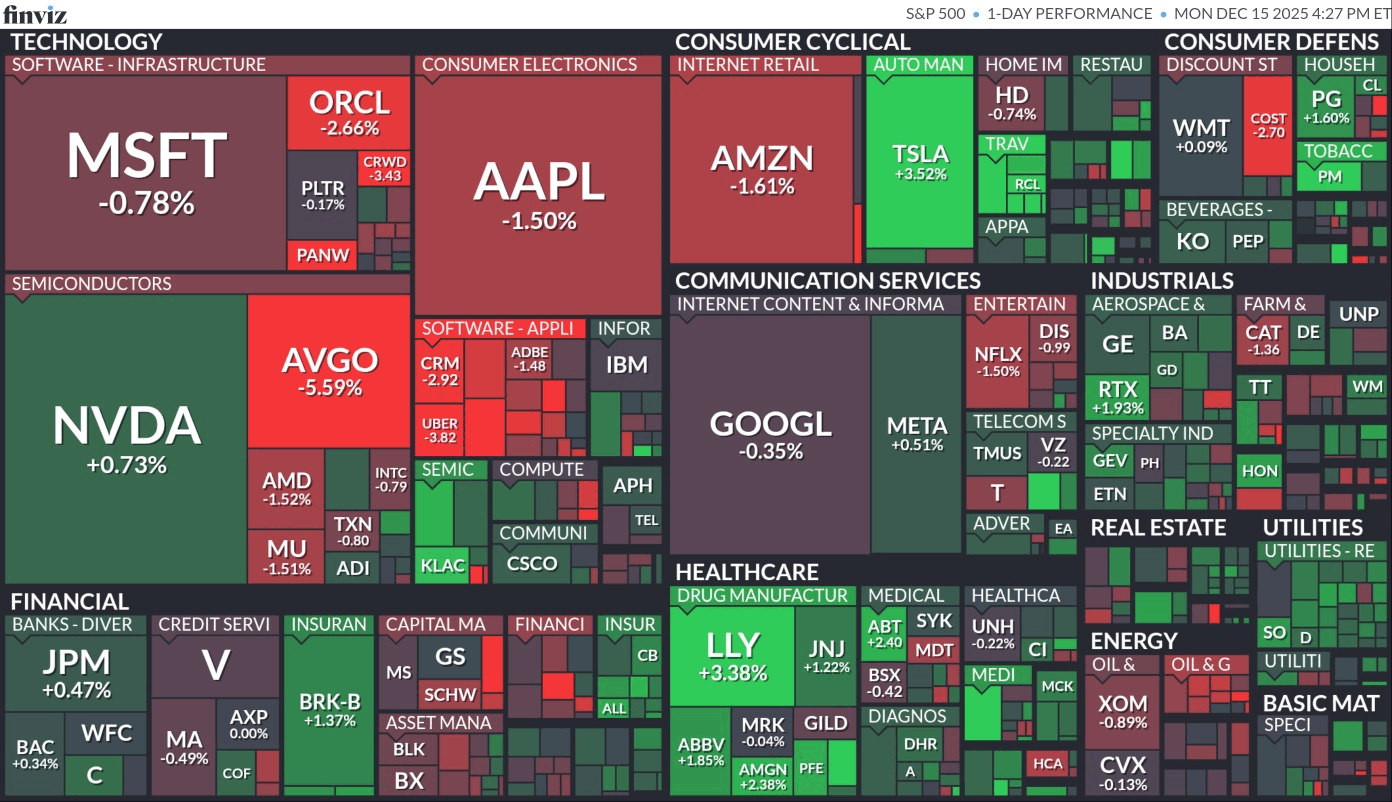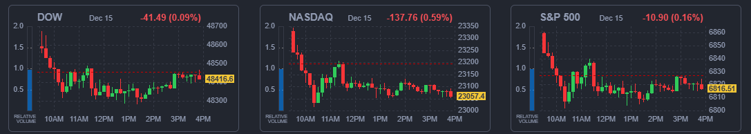 15일(현지시간) 미국 뉴욕증시에서 다우존스30산업평균지수는 전장대비 41.49포인트(-0.09%) 내린 4만8416.56에, 스탠더드앤드푸어스(S&P) 500지수는 10.90포인트(-0.16%) 밀린 6816.51로 거래를 마쳤다.