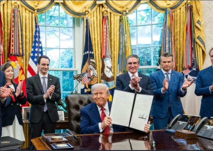 트럼프가 원자력 발전소 관련 규제를 완화하는 행정명령에 서명하는 자리에는 많은 사람들이 참석을 했다.