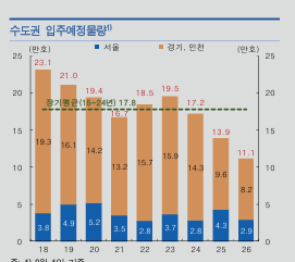 2025년에도 서울 및 수도권의 아파트 입주물량이 적지만, 2026년은 2025년보다 아파트 입주물량이 더 적다.