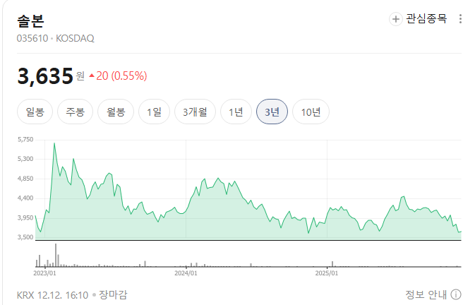 20. 새롬기술은 솔본으로 이름을 바꿨고, 오늘 자 주가는 3,635원임.