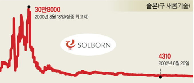 19. 2000년 8월 18일 30만 8000원까지 갔던 주가가 2년 만에 4,310원으로 돌아왔을 뿐임.