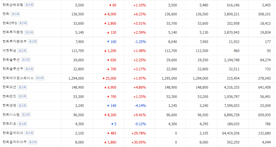 15. 한화갤러리아,한화호텔앤리조트,아워홈, 한화비전,한화모멘텀,한화세미텍,한화로보틱스등이 해당됨.