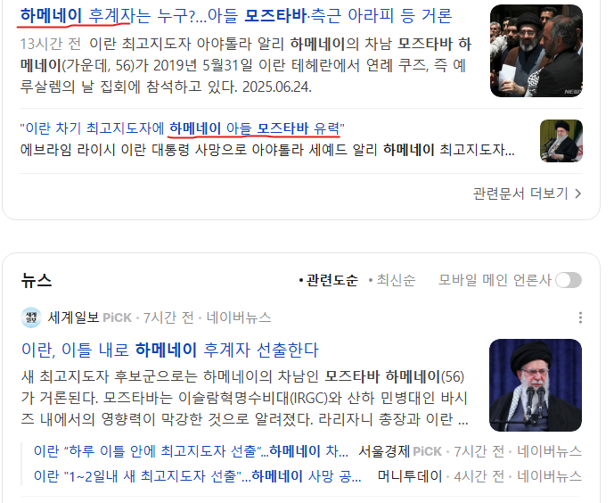 모즈타바 하메네이가 이번에 폭사한 하메네이의 후계자로 유력하다는 기사들이 나오고 있다.