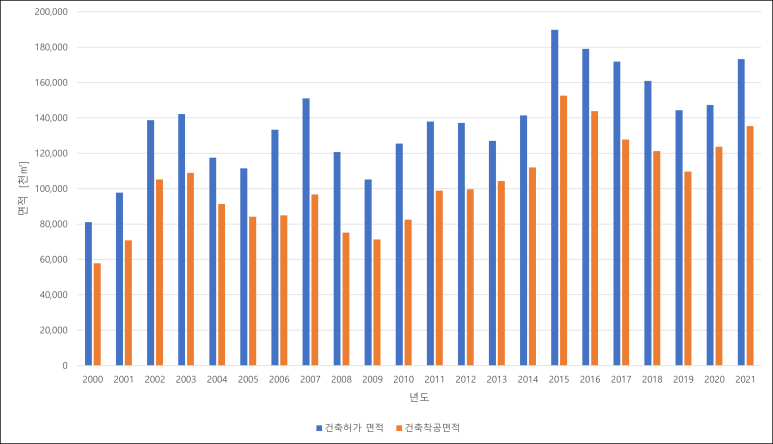 - 건설허가/착공 면적 증가 중