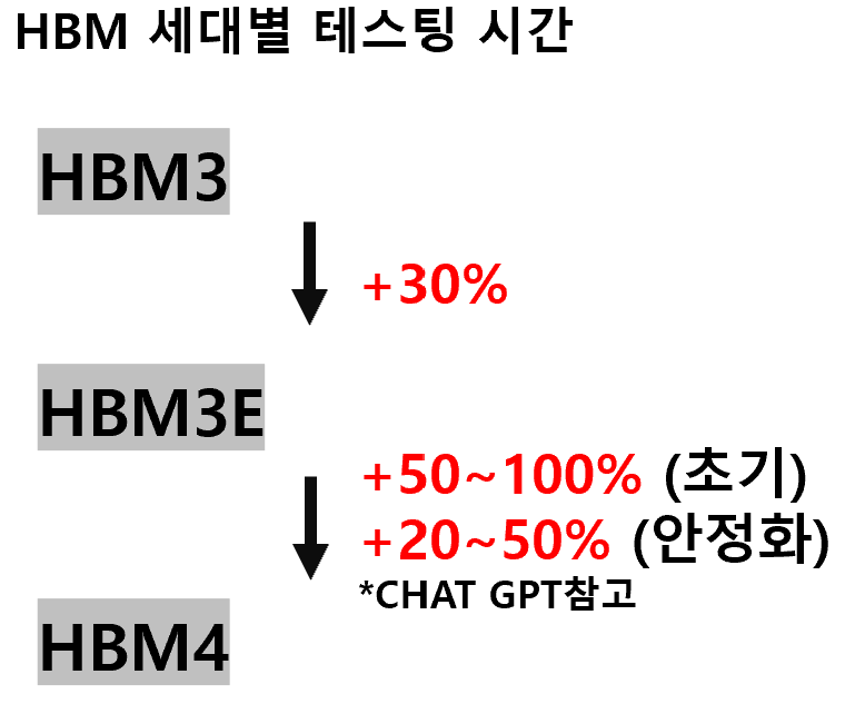 HBM 高단에 따른 테스팅시간 증가 -> Q 상승