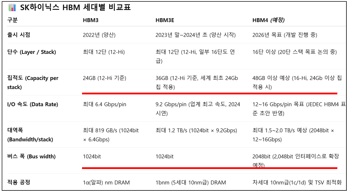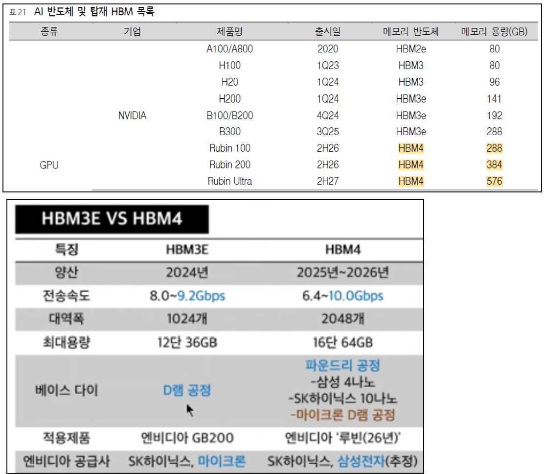 현재 HBM3E 양산중이고 26년부터 엔비디아 루빈에 HBM4탑재예정.