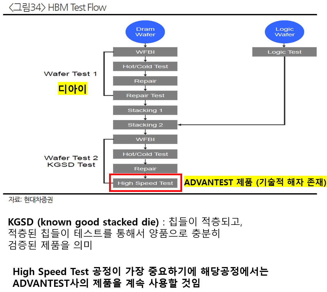 앞에서 확인한 꾸준한 HBM수요 -> ‘반도체 테스트 공정’ 중요성 ↑