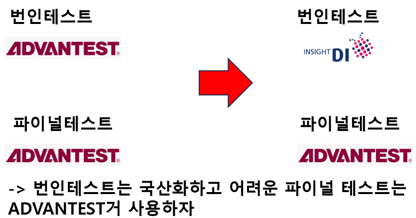 ADVANTEST 사의 캐파부족 문제, 시간 절약 문제, IDM의 비용절감문제 (국산장비는 ADVANTEST보다 싸다, ADVANTEST 단독 공급 부담스러울 것)