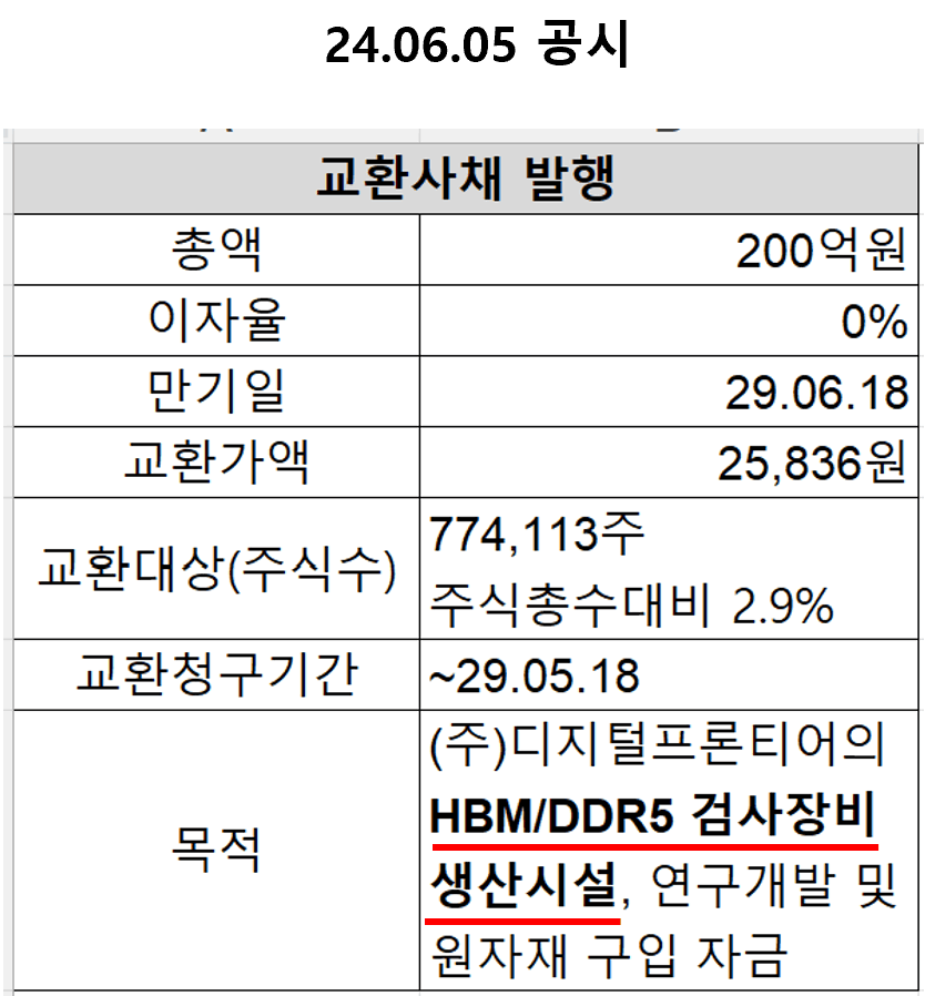 디아이 24.06.05 교환사채 공시