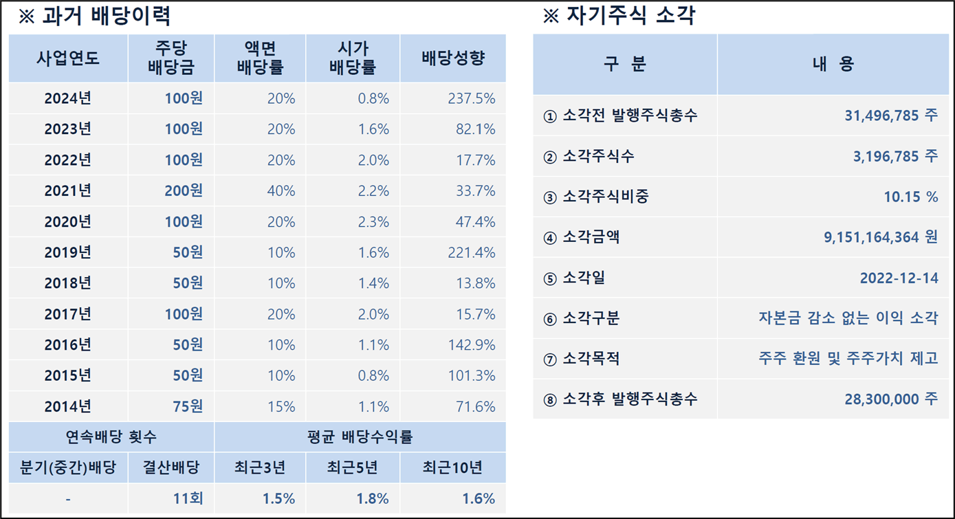 ‘11년 연속 현금배당’ · ’22년 말 자사주 10% 소각’