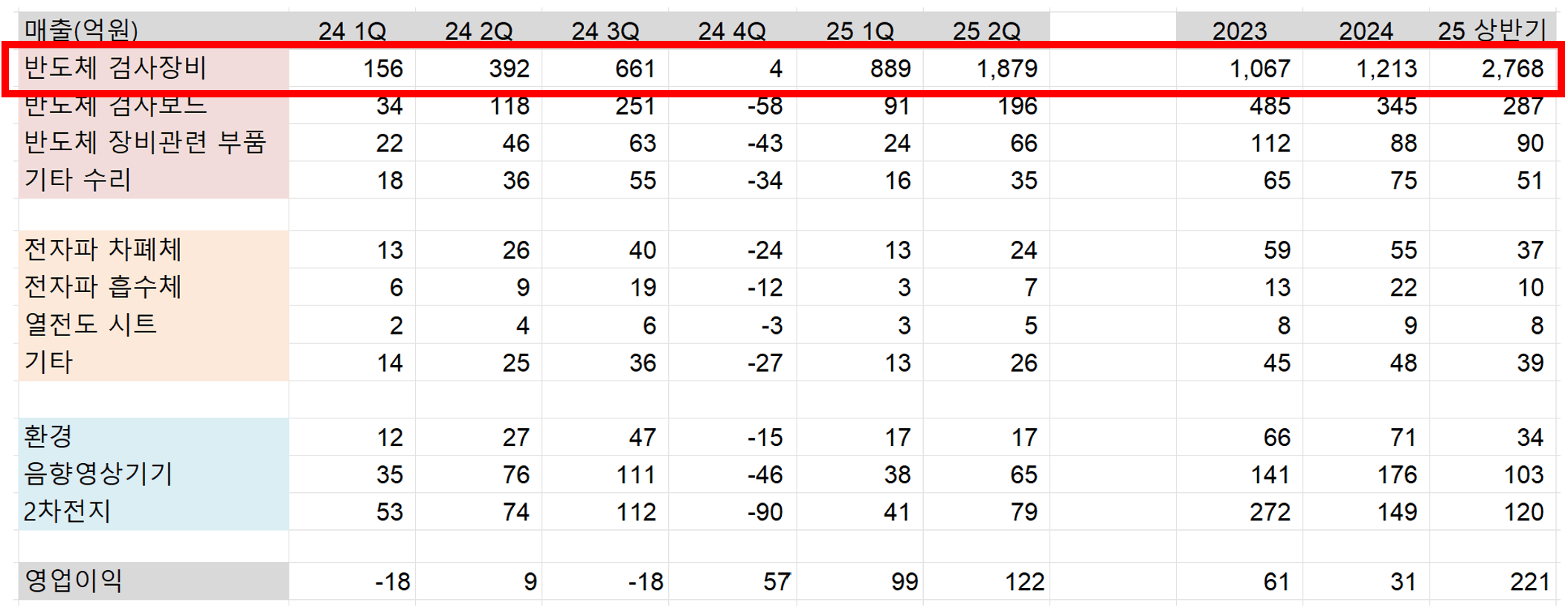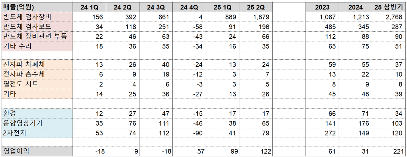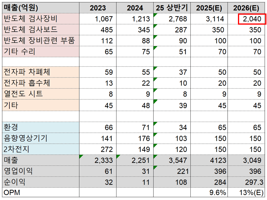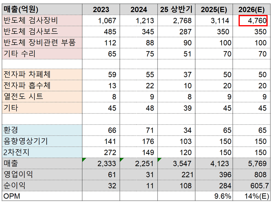 〮 반도체 검사장비 부문의 꾸준한 매출 성장 기대