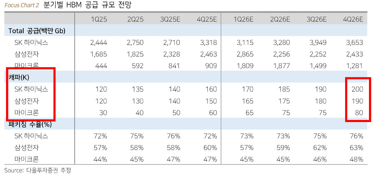 ’26년 기준 SK하이닉스 HBM CAPA 200K / 1K 당 납품대수 2대