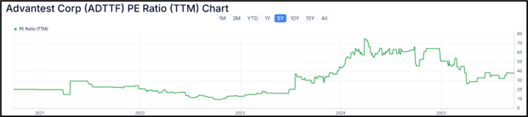 어드반테스트(시총 11조원, PER 45-50)