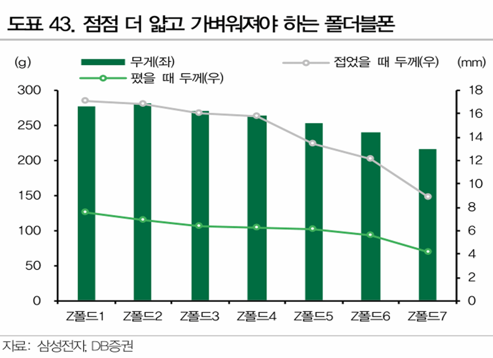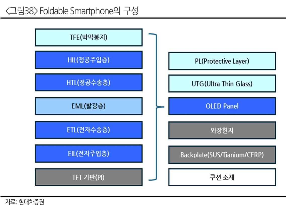 - 애플의 참전으로 경쟁사 라인업 스펙 고도화 + 뉴폼팩터向 수요 유입이 애플 독주만으로 그치지 않을 것. 특히, 디스플레이 주름, 두께에서 극히 얇고 미려한 디자인을 지향하는 애플 + 삼성이 하이그레이드 라인업에서 엣지를 보여줄 것
