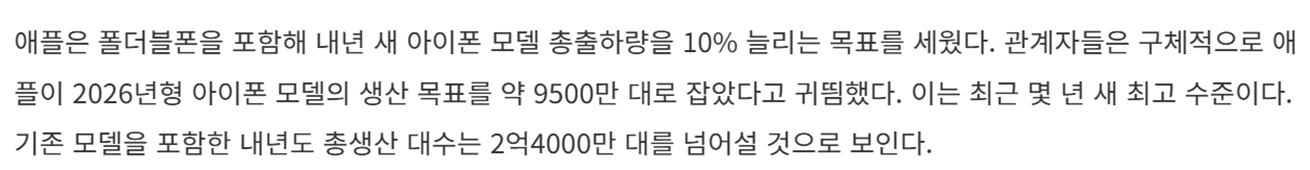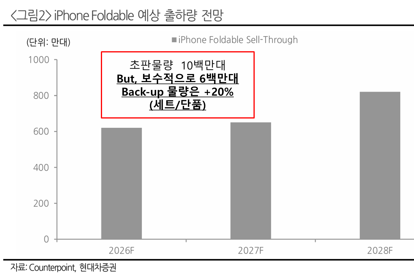 ☞ 2026년 아이폰 18 라인업에 폴더블 신규추가 유력설이 잇따르고 있으며, 세트사 입장에서 부품 공급망을 매우 구체화하고 있다는 점은 계획의 신빙성을 부여↑