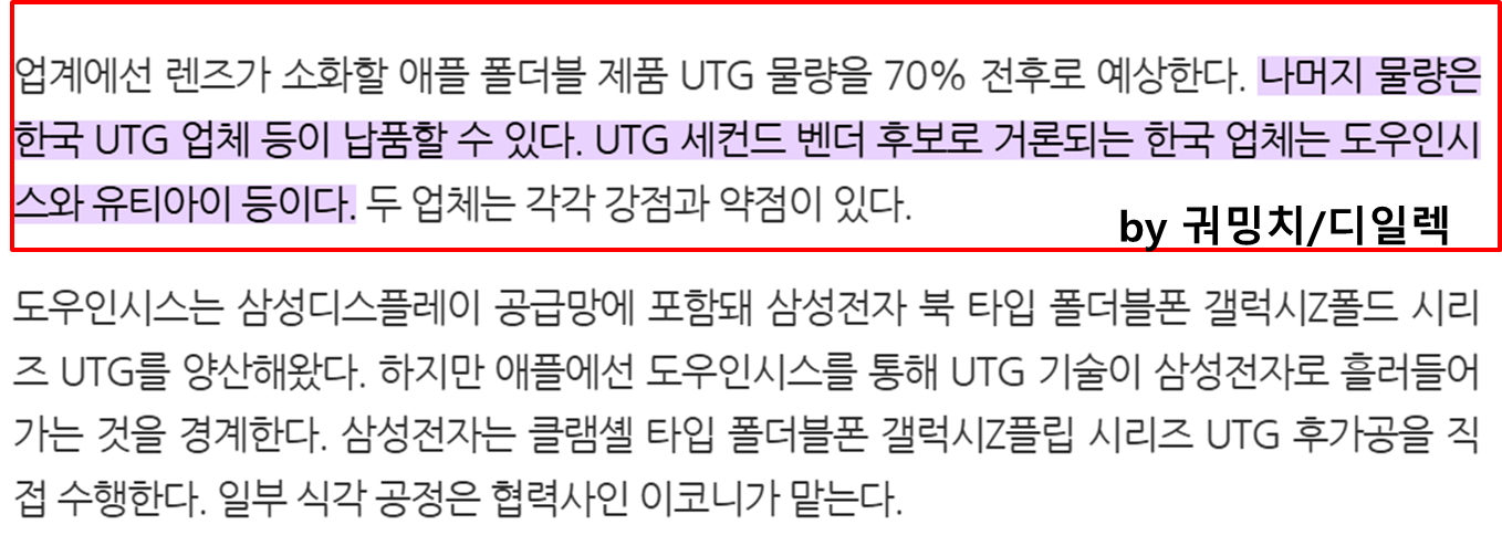 1) 애플 폴더블, UTG 공급망 진입 기회 ★